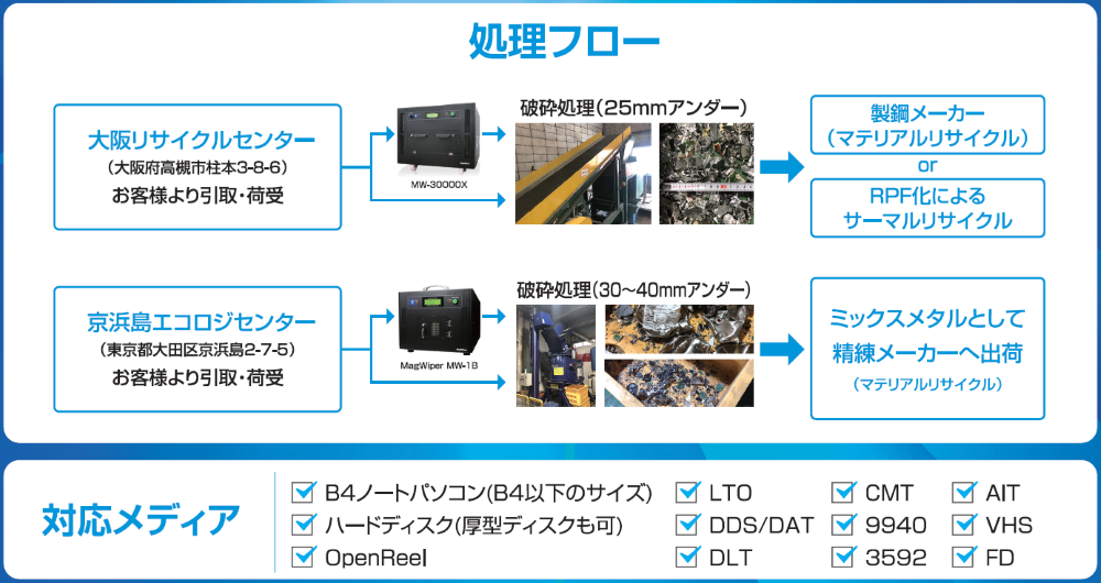 浜田では、廃パソコンを手作業で分解し、素材ごとのリサイクルを行っています。 また専用機械にてデータの磁気破壊も行い、その後破砕処理を行っているため、 情報漏洩の心配がありません! 回収から処理、データ破壊の証明書も発行致しますので安心です。